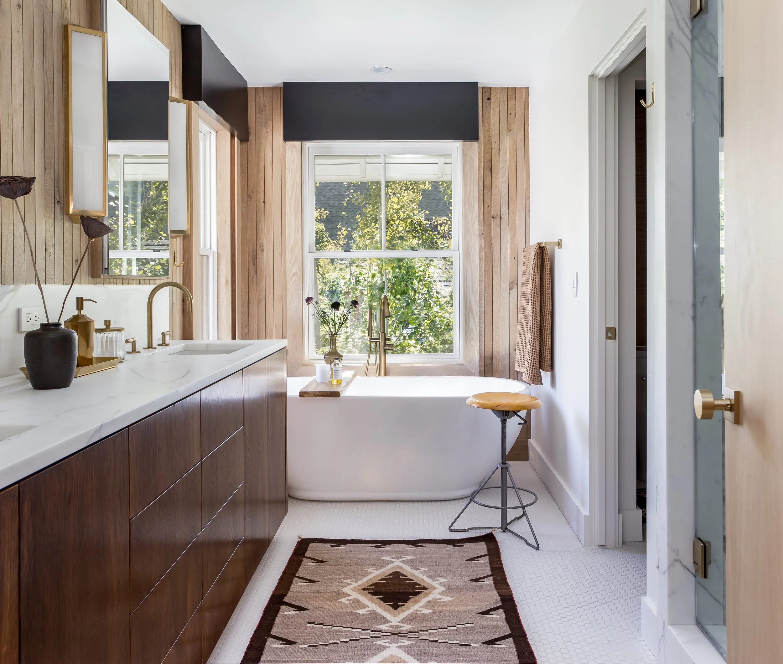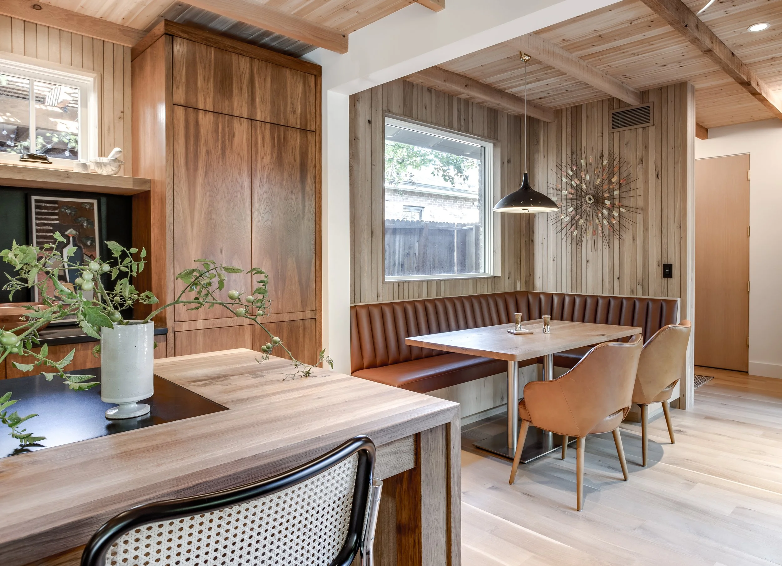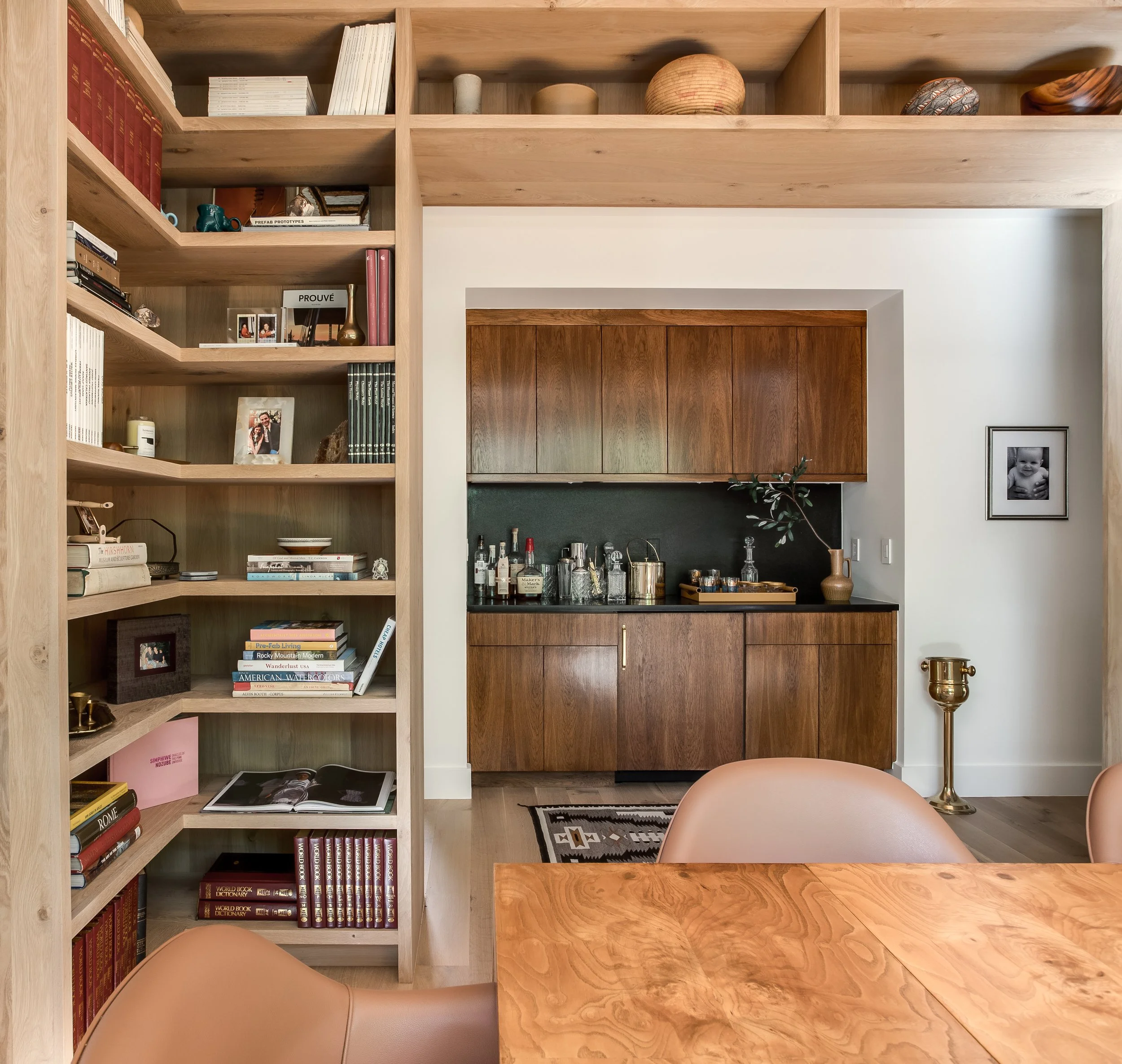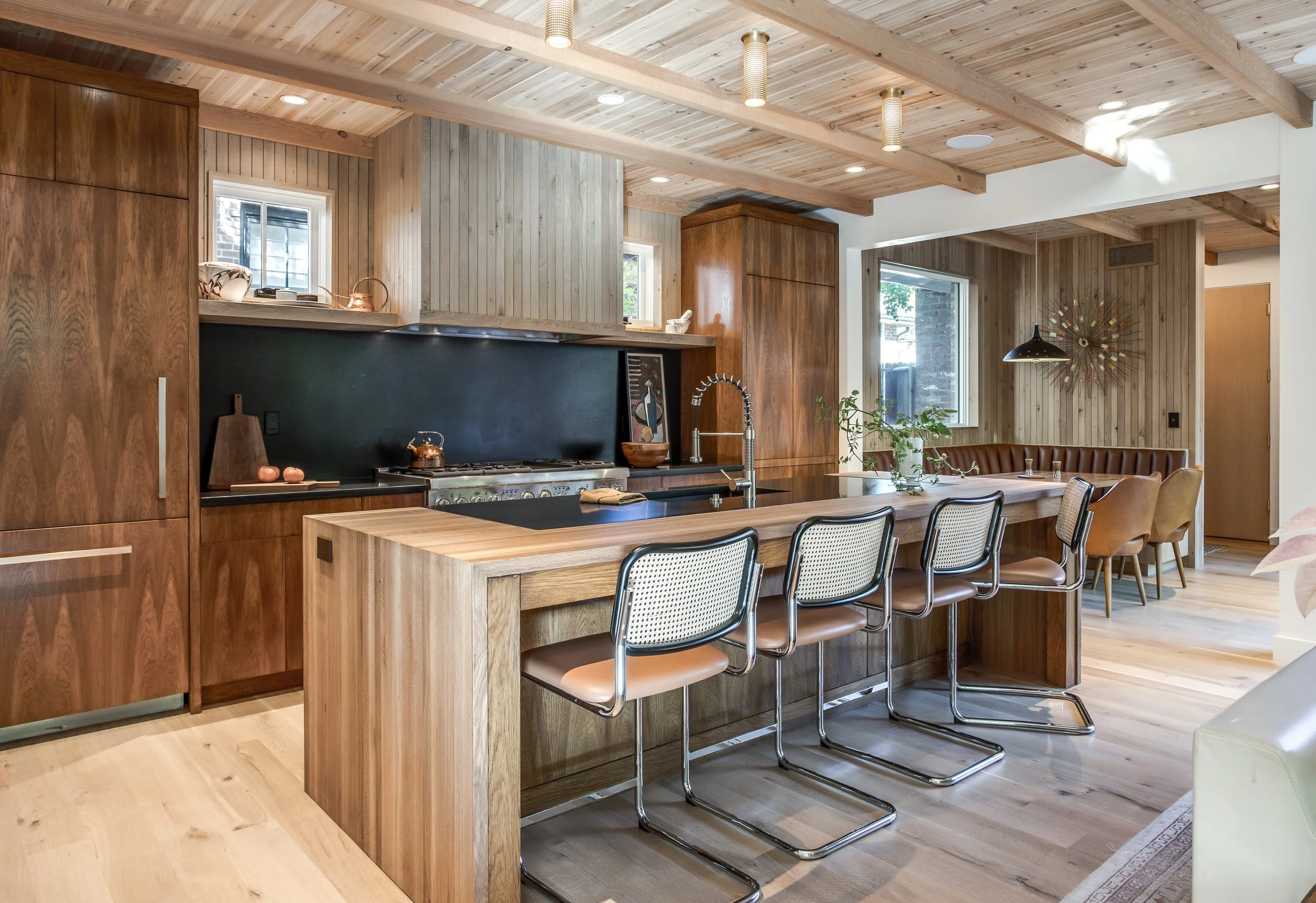 Purchased in 2020, Michael focused on warming up the space by opening up key living and entertaining areas, making the home feel both inviting and functional. The use of recycled brick throughout the exterior adds an eco-conscious touch while maintaining a connection to the neighborhood's historic roots. Inside, the library was transformed into a stunning, cozy space, and natural woods like cedar were incorporated to create an inviting atmosphere throughout the home.