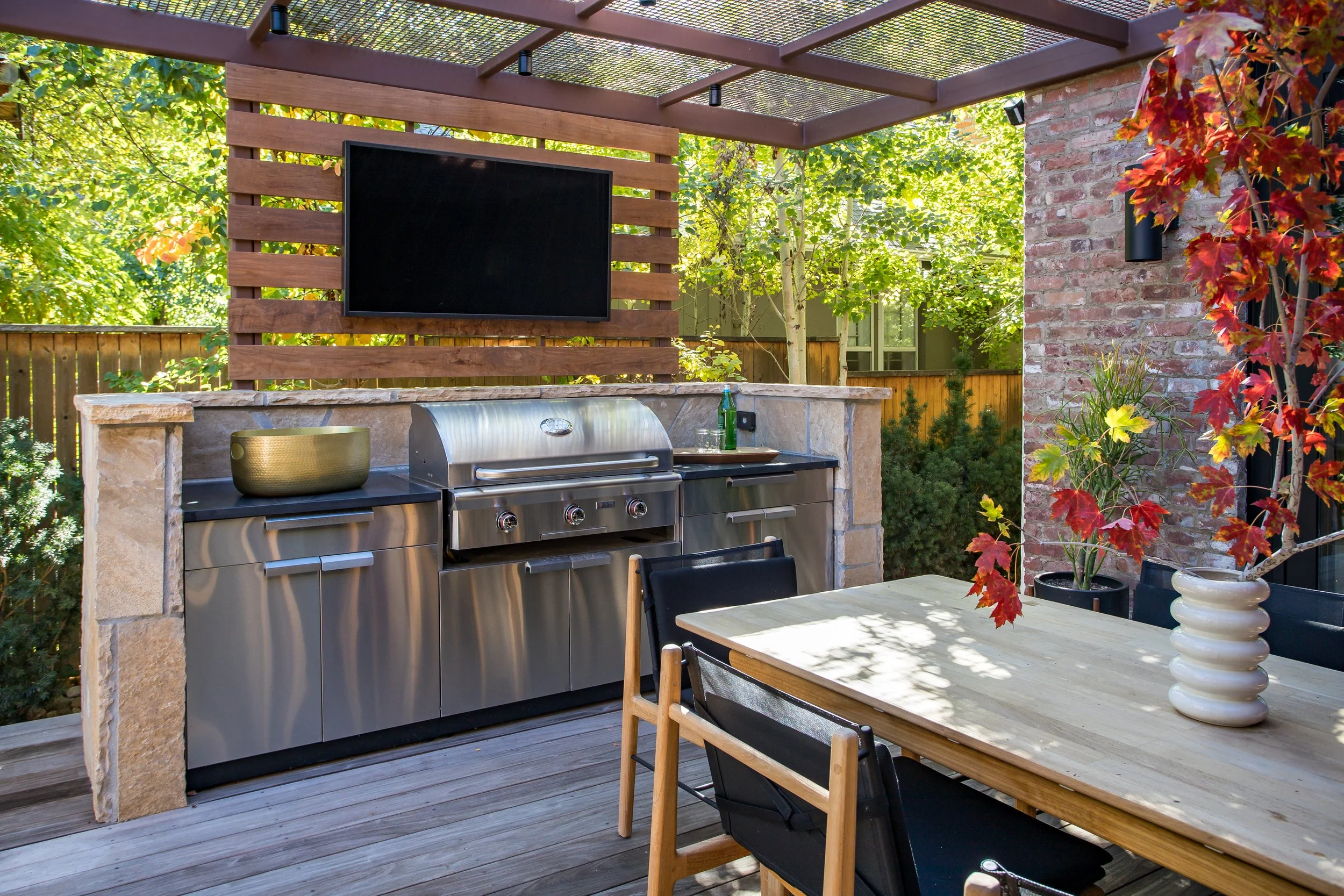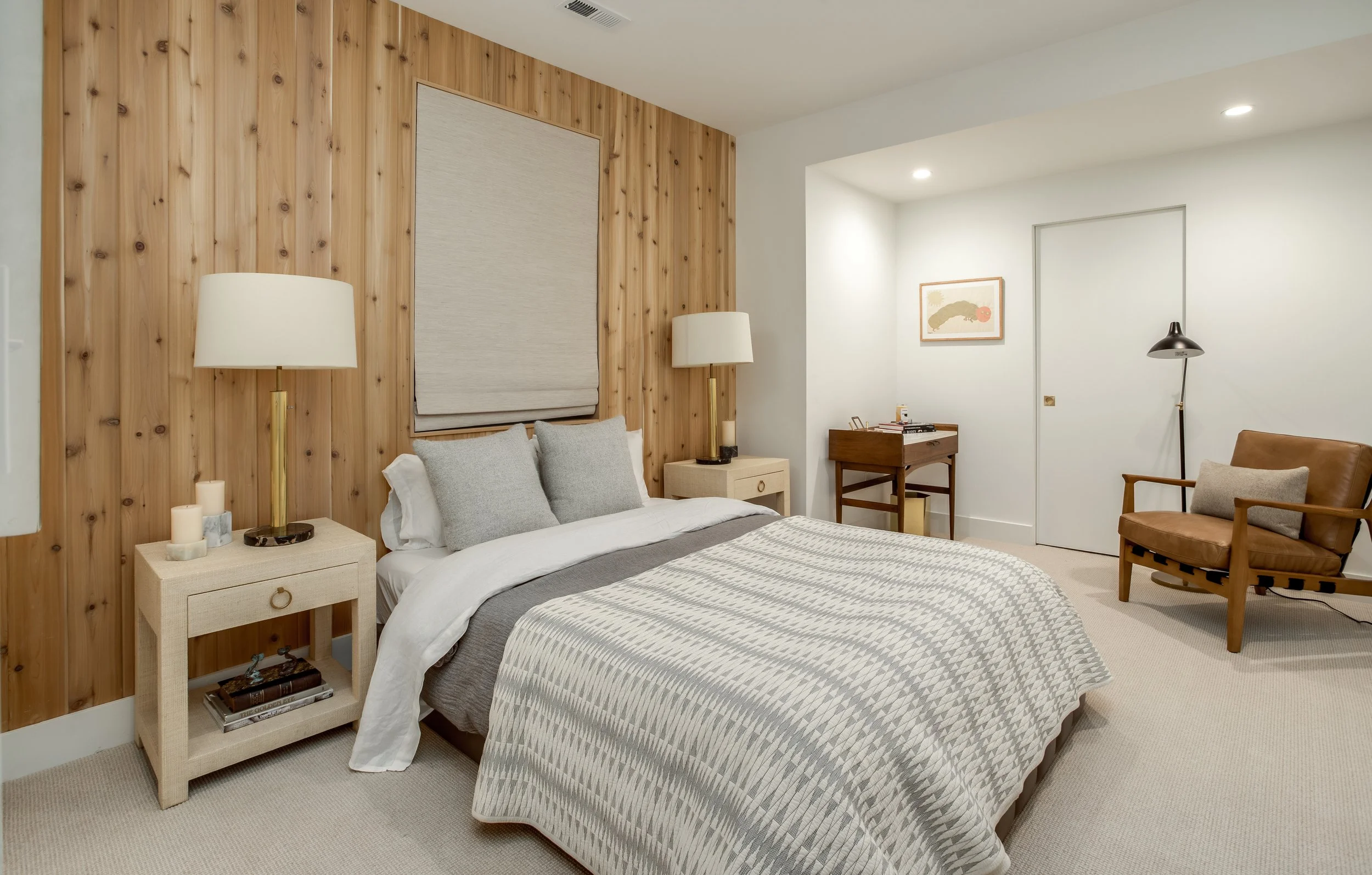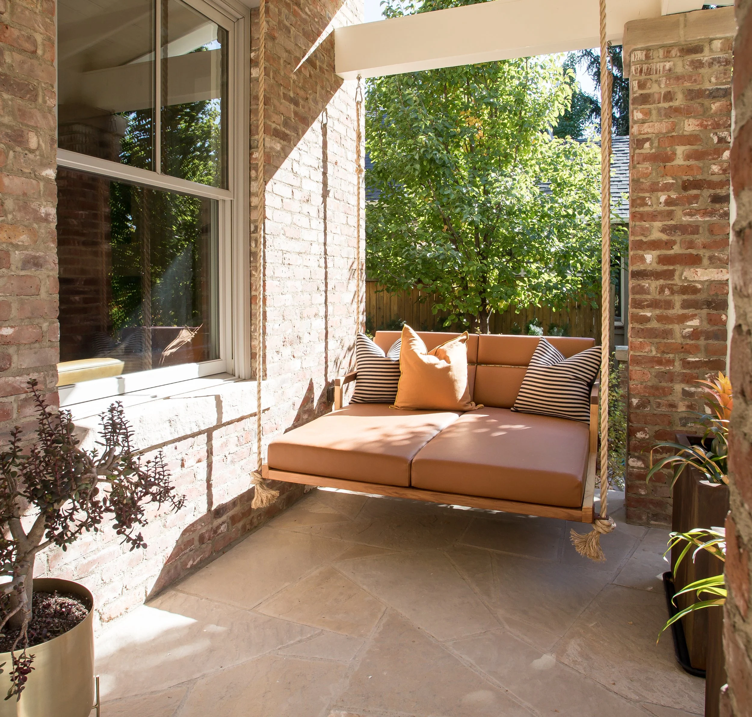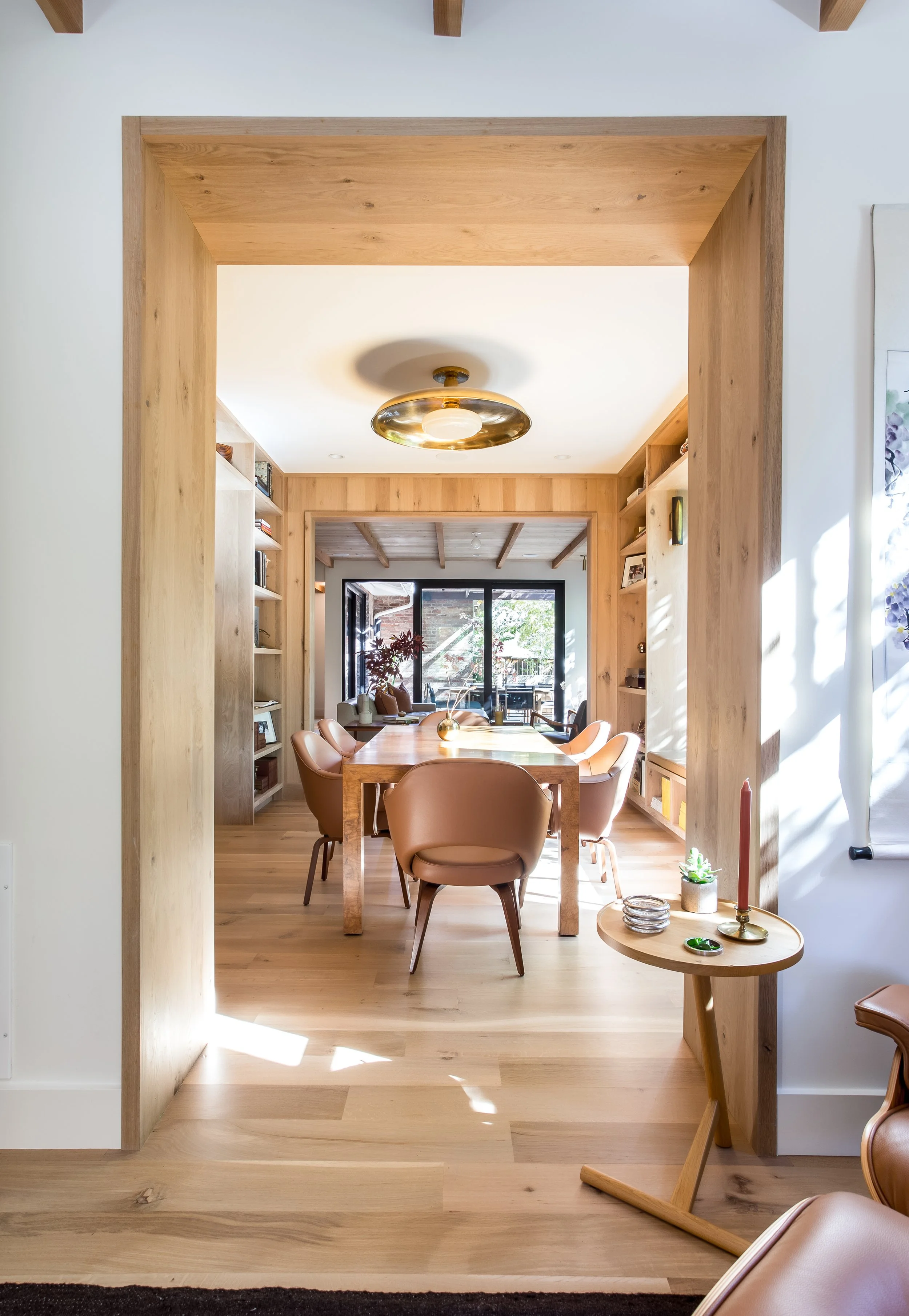 Purchased in 2020, Michael focused on warming up the space by opening up key living and entertaining areas, making the home feel both inviting and functional. The use of recycled brick throughout the exterior adds an eco-conscious touch while maintaining a connection to the neighborhood's historic roots. Inside, the library was transformed into a stunning, cozy space, and natural woods like cedar were incorporated to create an inviting atmosphere throughout the home.